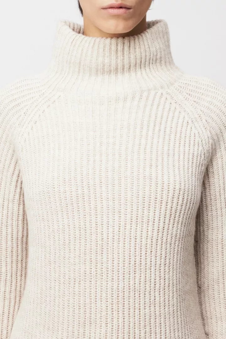 Door de volumineuze opstaande kraag is ARWEN je betrouwbare metgezel op koude dagen. De raglanmouwen en de rechte pasvorm zorgen voor extra draagcomfort. Gemaakt van ons kenmerkende wol-alpacagaren voor een bijzonder aangenaam draagcomfort.
