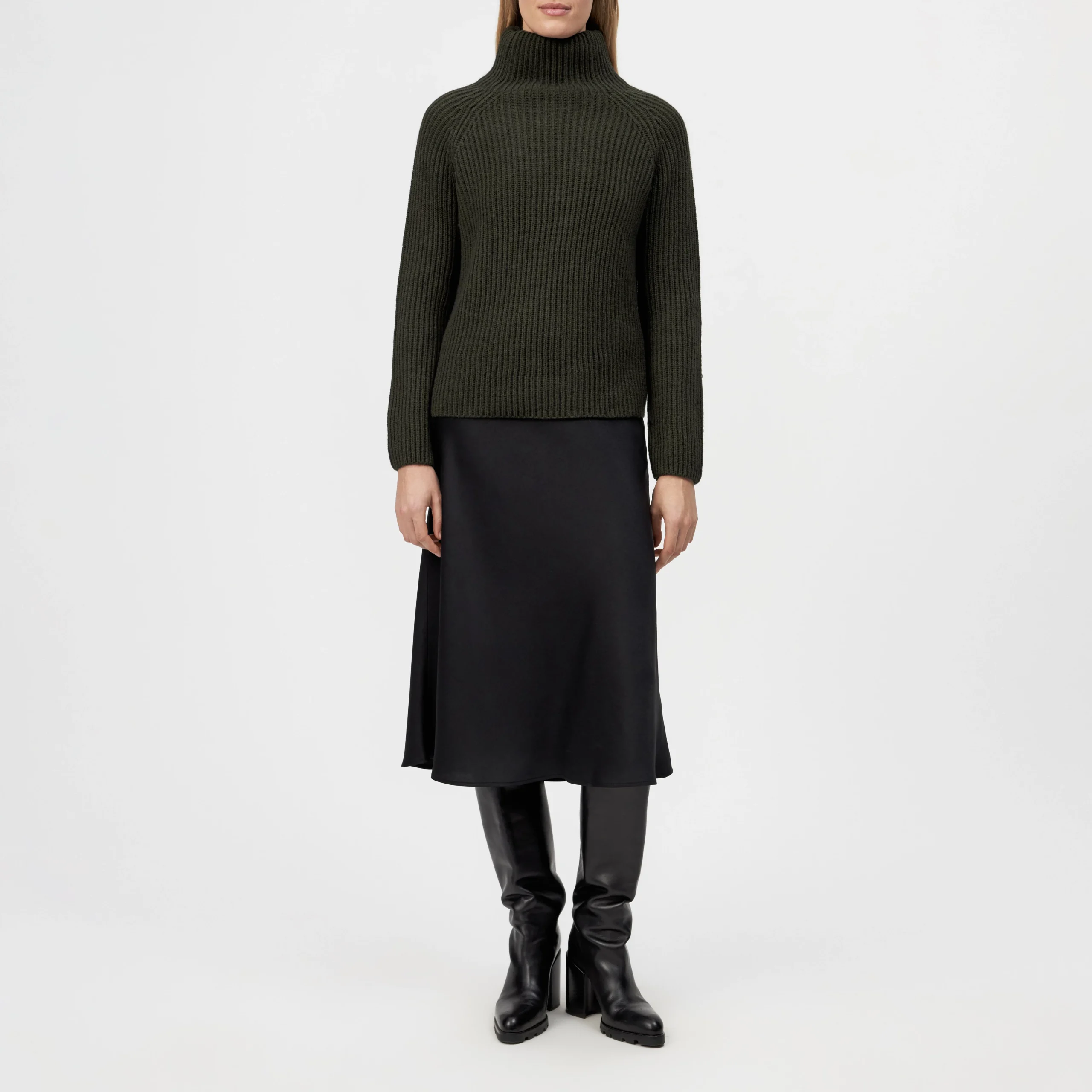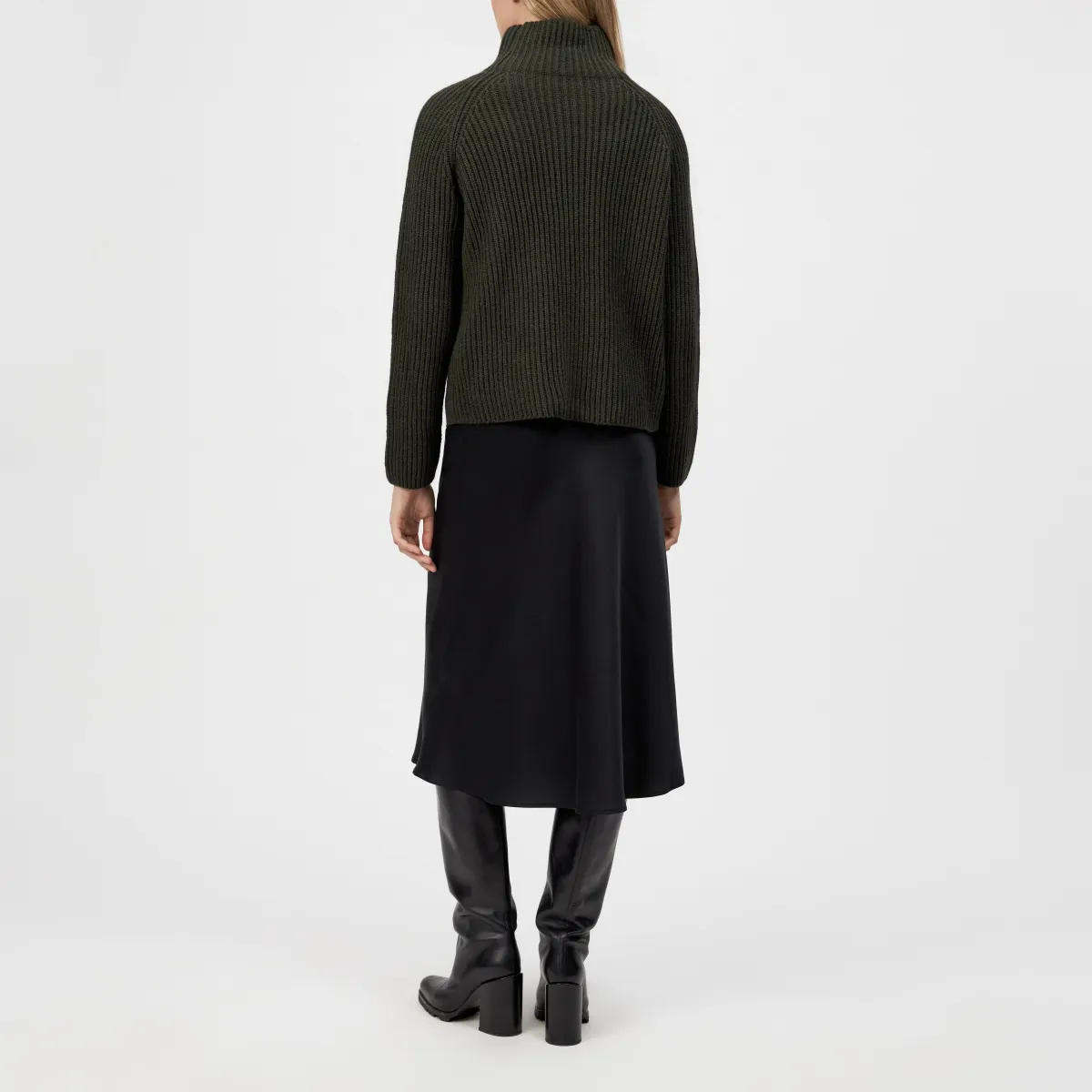 Door de volumineuze opstaande kraag is ARWEN je betrouwbare metgezel op koude dagen. De raglanmouwen en de rechte pasvorm zorgen voor extra draagcomfort. Gemaakt van ons kenmerkende wol-alpacagaren voor een bijzonder aangenaam draagcomfort.